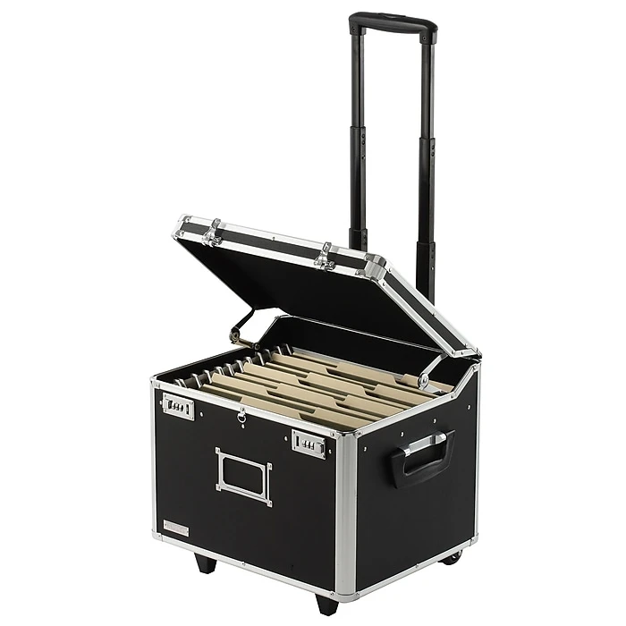 - Tough Wheels -Our locking storage chest is equip with sturdy wheels and a telescoping handle so you can transport even heavy files quickly and easily